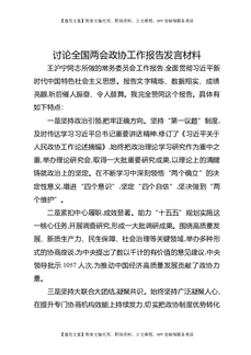 讨论全国两会政协工作报告发言材料.docx