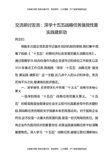 交流研讨发言:深学十五五战略任务强党性重实践建新功.docx