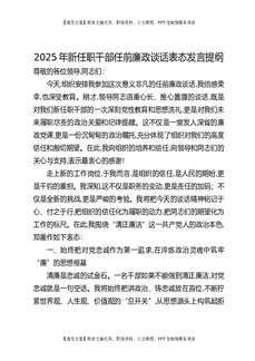 2025年新任职干部任前廉政谈话表态发言提纲.docx