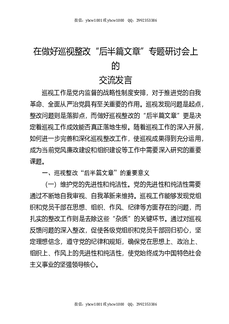 在做好巡视(巡察)整改“后半篇文章”专题研讨会上的交流发言.docx
