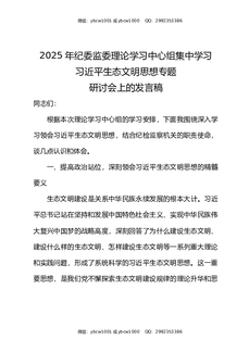 2025年纪委监委理论学习中心组集中学习习近平生态文明思想专题研讨会上的发言稿.docx