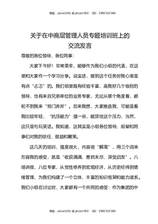 关于在中高层管理人员专题培训班上的交流发言.docx