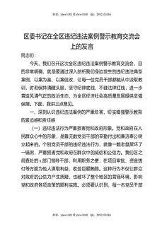 区委书记在全区违纪违法案例警示教育交流会上的发言.docx