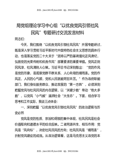 局党组理论学习中心组“以优良党风引领社风民风”专题研讨交流发言材料.docx