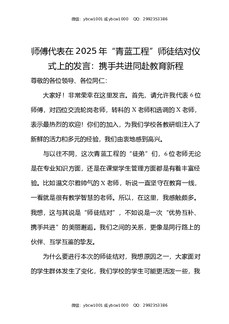 师傅代表在2025年“青蓝工程”师徒结对仪式上的发言:携手共进同赴教育新程.docx
