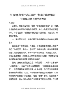 省生态环境厅“树牢正确政绩观”专题学习会上的交流发言.docx