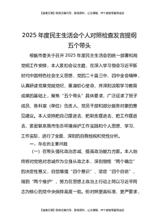 2025年度专题民主生活会对照检查发言提纲五个带头.docx