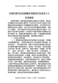 乡镇纪委书记巡察整改专题民主生活会个人发言提纲.docx