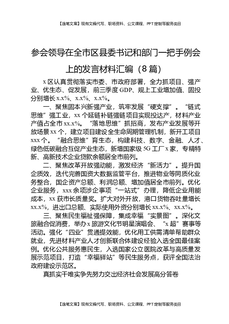 参会领导在全市区县委书记和部门一把手例会上的发言材料汇编(8篇).docx