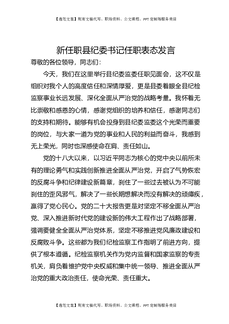 新任职县纪委书记任职表态发言.docx