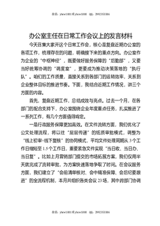 办公室主任在日常工作会议上的发言材料.docx