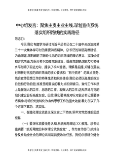 中心组发言:聚焦主责主业主线,谋划宣传系统落实组织路线的实践路径.docx