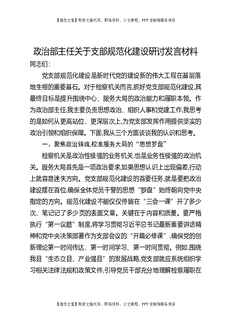 政治部主任关于支部规范化建设研讨发言材料.docx