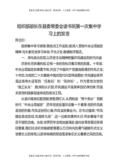 组织部部长在县委常委会读书班第一次集中学习上的发言.docx