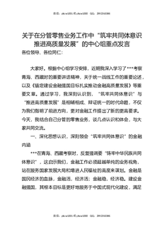 中心组重点发言:关于在分管零售业务工作中“筑牢共同体意识推进高质量发展”的中心组重点发言.docx