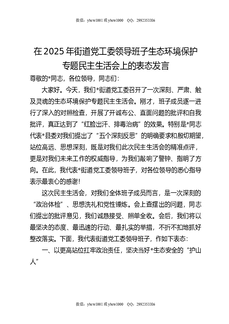 在2025年街道党工委领导班子生态环境保护专题民主生活会上的表态发言.docx