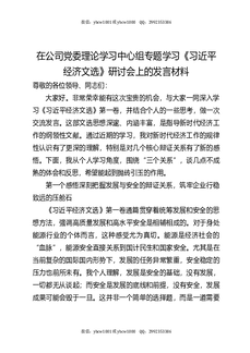 在公司党委理论学习中心组专题学习《经济文选》研讨会上的发言材料.docx