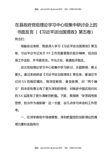 在县政府党组理论学习中心组集中研讨会上的书面发言(《习近平谈治国理政》第五卷).docx