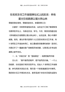 在名班主任工作室授牌仪式上的发言:幸有星光引前路,愿以萤火照山林.docx