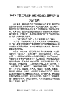 2025年第二季度科室标杆经济发展研究科交流发言稿.docx
