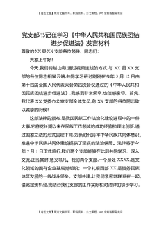 党支部书记在学习《中华人民共和国民族团结进步促进法》发言材料.docx