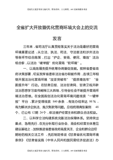 全省扩大开放暨优化营商环境大会上的交流发言.docx