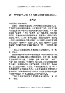 市一中党委书记在XX市教育高质量发展大会上发言.docx