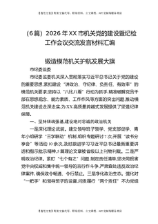 (6篇)2026年XX市机关党的建设暨纪检工作会议交流发言材料汇编.docx