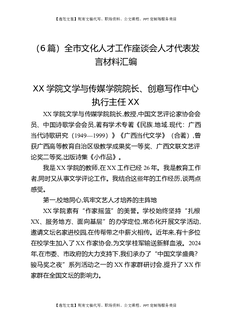 (6篇)全市文化人才工作座谈会人才代表发言材料汇编.docx