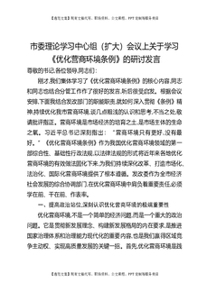 市委理论学习中心组(扩大)会议上关于学习《优化营商环境条例》的研讨发言.docx