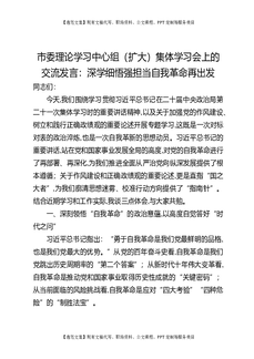 市委理论学习中心组(扩大)集体学习会上的交流发言:深学细悟强担当自我革命再出发.docx