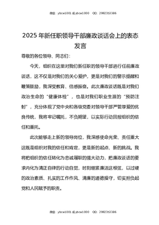2025年新任职领导干部廉政谈话会上的表态发言.docx