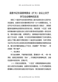 县委书记在县委常委会(扩大)会议上关于学习全会精神的发言.docx