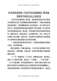 在市发改委党组《谈治国理政》第五卷专题学习研讨会议上的发言.docx