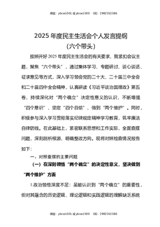 2025年度民主生活会个人发言提纲(六个带头).docx