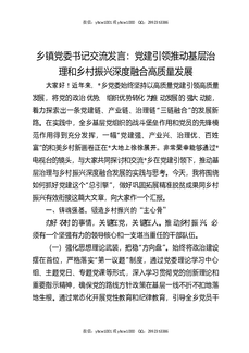 乡镇党委书记交流发言:党建引领推动基层治理和乡村振兴深度融合高质量发展.docx