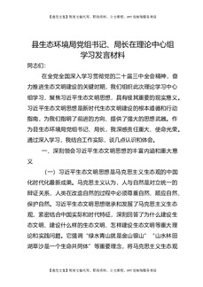 县生态环境局党组书记、局长在理论中心组学习发言材料.docx