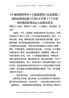 XX镇党委领导在十三届县委第八轮巡察第二常规巡察组巡察XX镇XX村等17个村党组织情况反馈会议上的表态发言.docx