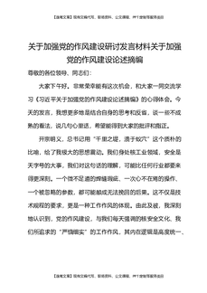 关于加强党的作风建设研讨发言材料关于加强党的作风建设论述摘编.docx