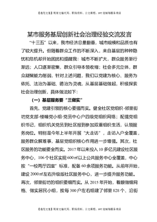 某市服务基层创新社会治理经验交流发言.docx