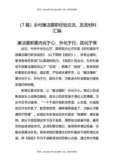 (7篇)乡村廉洁履职经验交流、发言材料汇编.docx