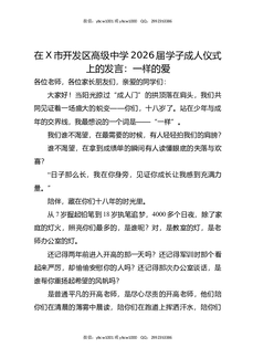 在X市开发区高级中学2026届学子成人仪式上的发言:一样的爱.docx