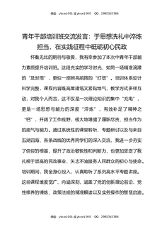 青年干部培训班交流发言:于思想洗礼中淬炼担当,在实践征程中砥砺初心民政.docx