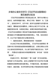 乡镇办公室主任学习《习近平谈治国理政》第五卷研讨发言.doc
