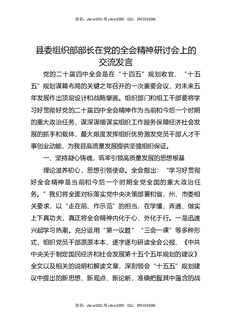 县委组织部部长在党的全会精神研讨会上的交流发言.docx