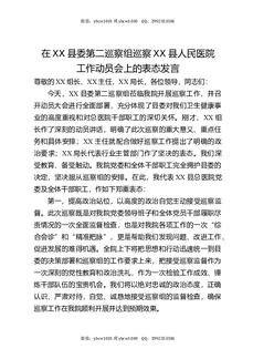 在XX县委第二巡察组巡察XX县人民医院工作动员会上的表态发言.docx
