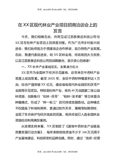 在XX区现代林业产业项目招商洽谈会上的发言.docx