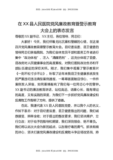 在XX县人民医院党风廉政教育暨警示教育大会上的表态发言.docx