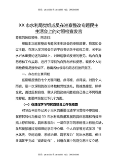 XX市水利局党组成员在巡察整改专题民主生活会上的对照检查发言.docx
