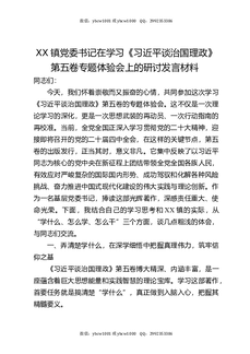 XX镇党委书记在学习《习近平谈治国理政》第五卷专题体验会上的研讨发言材料.docx
